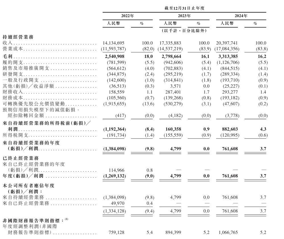 《节点财经》看来,这份增长背后,是“客户拓展+品类深耕”的双轮驱动:一方面,重点企业客户从2023年的约9500个增至2024年的1.06万个,且重点客户交易额存留率高达105.7%,客户黏性与复购能力稳居行业前列;另一方面,商品销售收入作为核心增长引擎,2022—2024年复合年增长率达21.7%,2024年更是以192亿元营收同比增长18.9%,印证了其供应链服务的市场认可度。