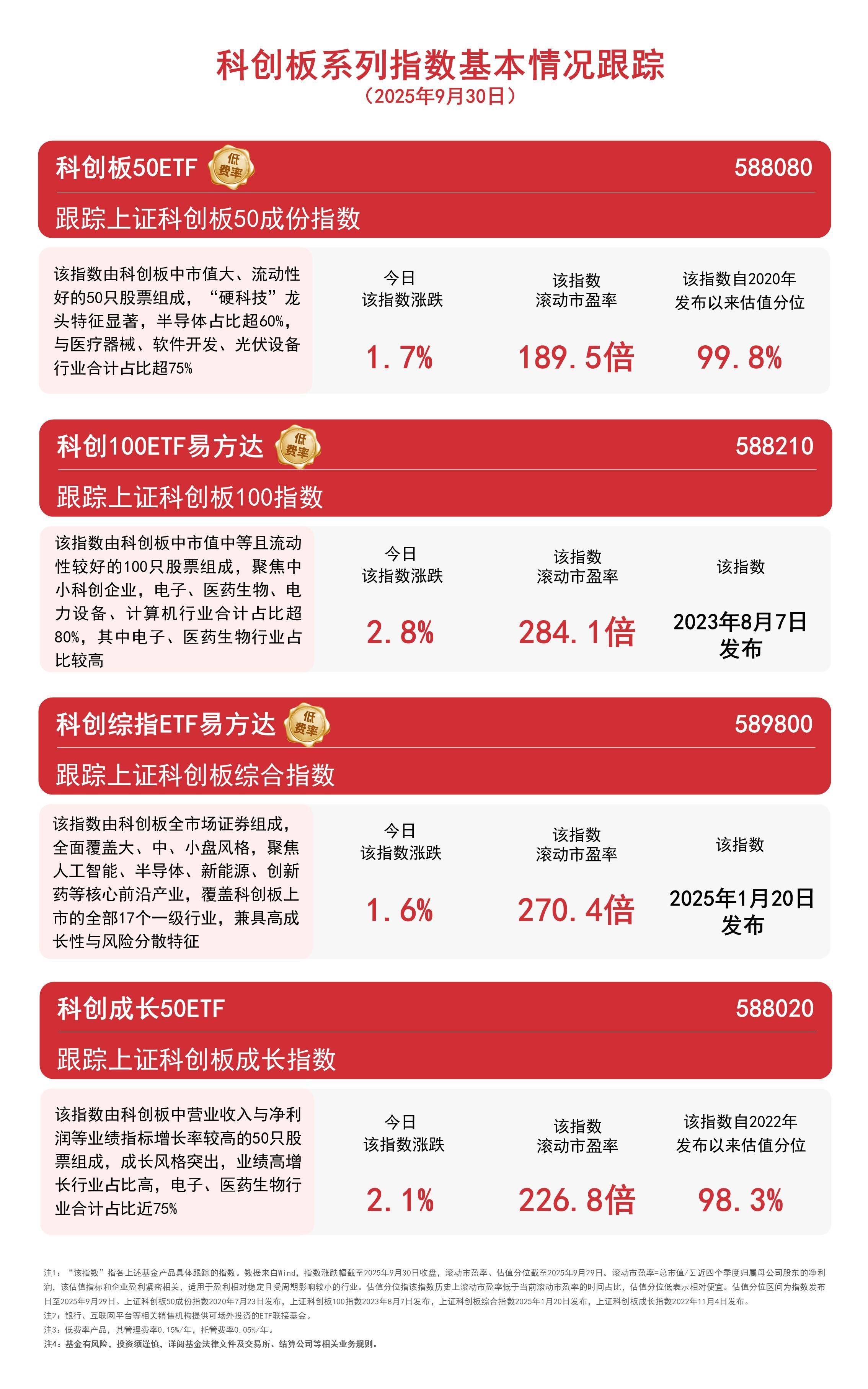 半导体板块今日全线走强,存储器、ASIC芯片、光刻机等概念领涨。截至收盘,科创100指数上涨2.8%,科创板成长指数上涨2.1%,科创板50指数上涨1.7%,科创综指上涨1.6%。以上指数中,科创板50指数的半导体行业权重最高,超过65%,科创板50ETF(588080)最新规模超750亿元,在科创板全部ETF中位居第一。