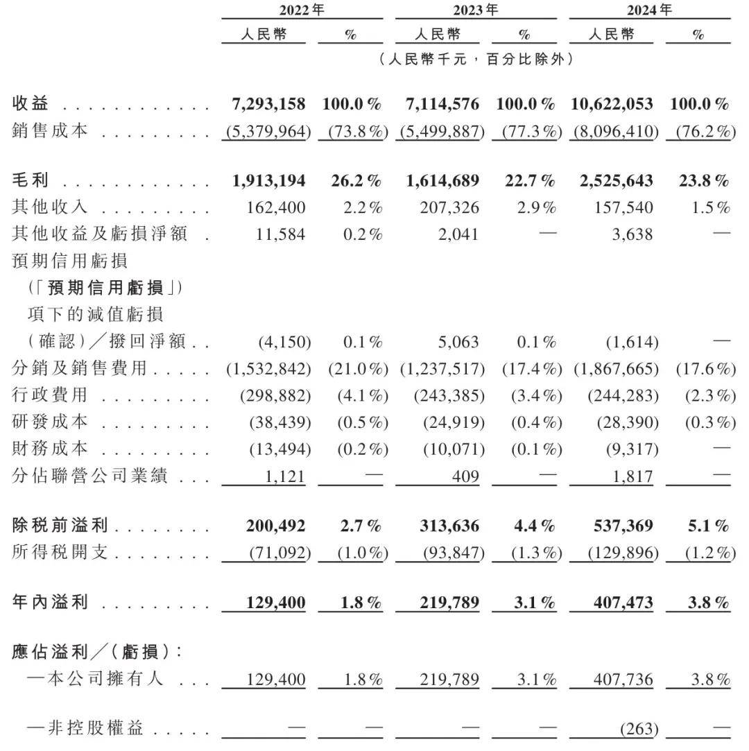 三只松鼠2022年、2023年、2024年年内盈利分别为1.29亿元、2.2亿元、4.07亿元;年内盈利率分别为1.8%、3.1%、3.8%。