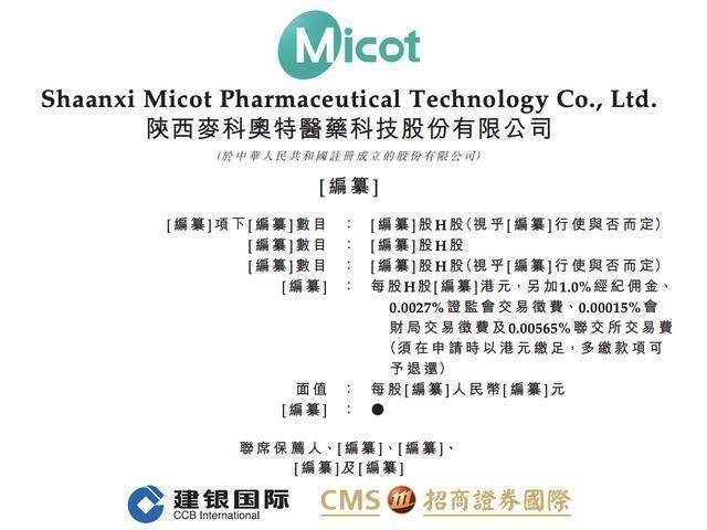 瑞财经 刘治颖 9月29日,陕西麦科奥特医药科技股份有限公司(以下简称“麦科奥特”)向港交所提交上市申请书,联席保荐人为建银国际、招商证券国际。