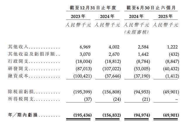 2023年、2024年及2025年上半年,麦科奥特其他收入分别为696.9万元、400.2万元及122.2万元,期内亏损分别为1.95亿元、1.57亿元及4990.1万元。