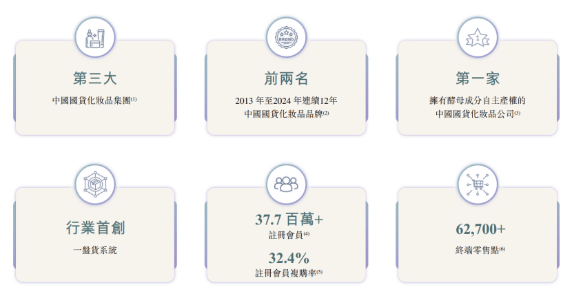根据弗若斯特沙利文的资料,以2024年零售额计,自然堂是中国第二大的国货化妆品品牌。根据弗若斯特沙利文调研,自然堂亦在消费者认可度、购买频率及复购意愿方面在所有受调研的大众国货化妆品品牌中排名第一。