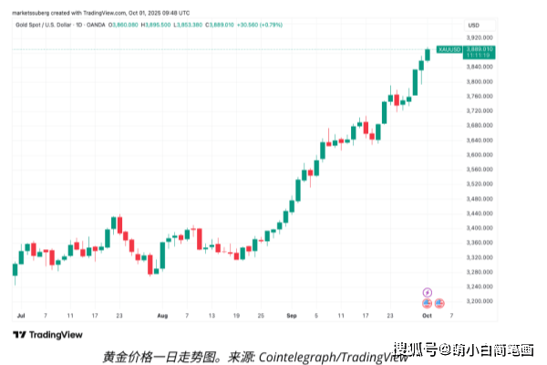 区块链周刊10月2日消息,比特币最新涨势伴随黄金再创历史新高。作为今年表现强劲的贵金属,黄金创下每盎司3895美元的新纪录。