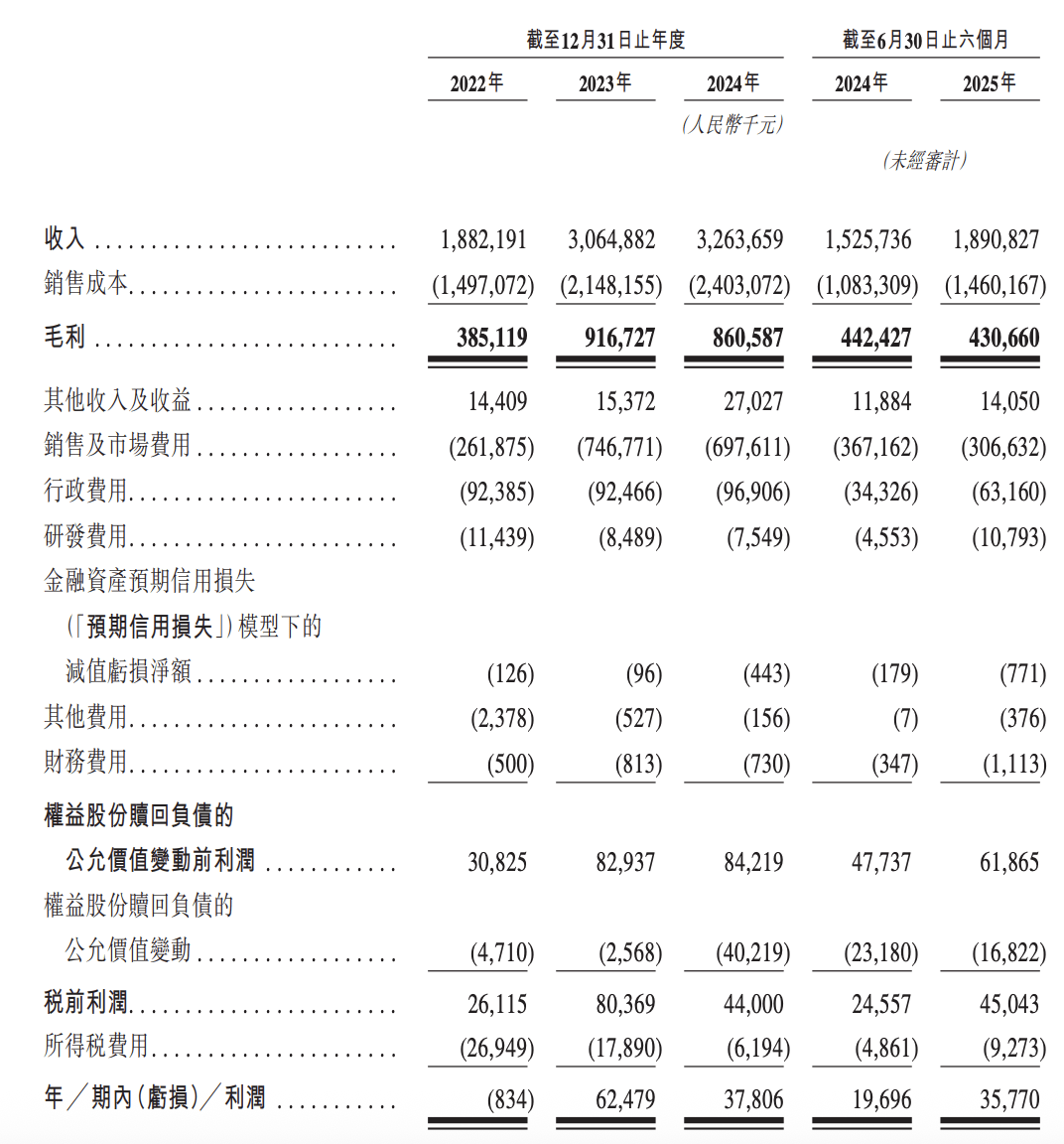 于2023年、2024年及截至2025年6月30日止六个月,公司分别录得净利润6250万元、3780万元及3580万元,主要由于公司不断扩大的客户群、多元化的SKU及更强的客户服务能力推动收入大幅增加。