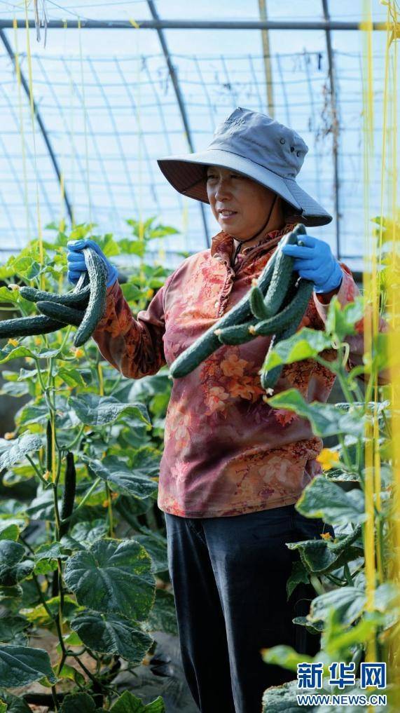 图为工人展示采摘的黄瓜(9月26日摄)。新华网 柑丹鸯琦摄