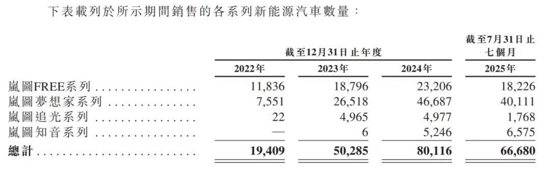 据岚图汽车招股书公布的销量显示,2022年至2025年7月,岚图汽车共销售217030辆汽车,其中MPV车型——岚图梦想家销售120867辆,占比超55%。