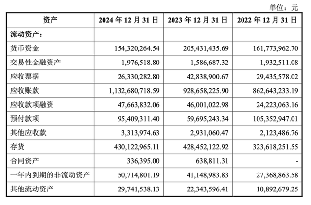 首先是高企的应收账款,报告期内,至信实业的应收账款账面价值从8.63亿元激增至11.33亿元,占当期流动资产的比例高达57.42%。其次是庞大的存货规模,由于整车厂普遍采用“零库存”的生产模式,备货压力完全转移给了上游供应商,至信实业的存货规模在2024年末达到了4.3亿元,占流动资产的21.8%。