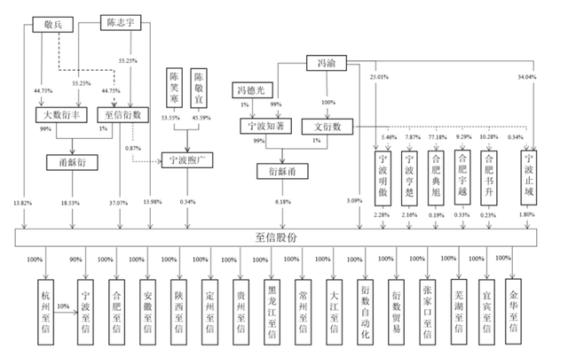 如今,陈志宇、敬兵夫妻直接以及通过重庆至信投资、宁波明奥、宁波恒储等多个持股平台间接持股,合计控制了至信实业高达83.75%的表决权。