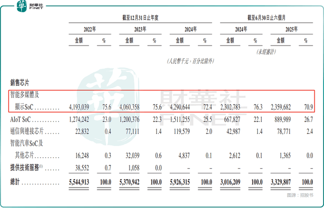 分产品来看,2022年至2024年及2025年上半年,智能多媒体及显示SoC实现的收入占总收入的比重分别为75.6%、75.6%、72.4%、70.9%,可见公司的业绩对这部分产品依赖性较高。