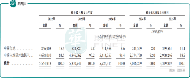 分区域来看,晶晨股份的大部分收入来自中国内地以外的市场。2022年至2024年及2025年上半年,中国内地以外地区贡献的收入占总收入的比重分别为84.5%、90.2%、91.4%、88.9%。
