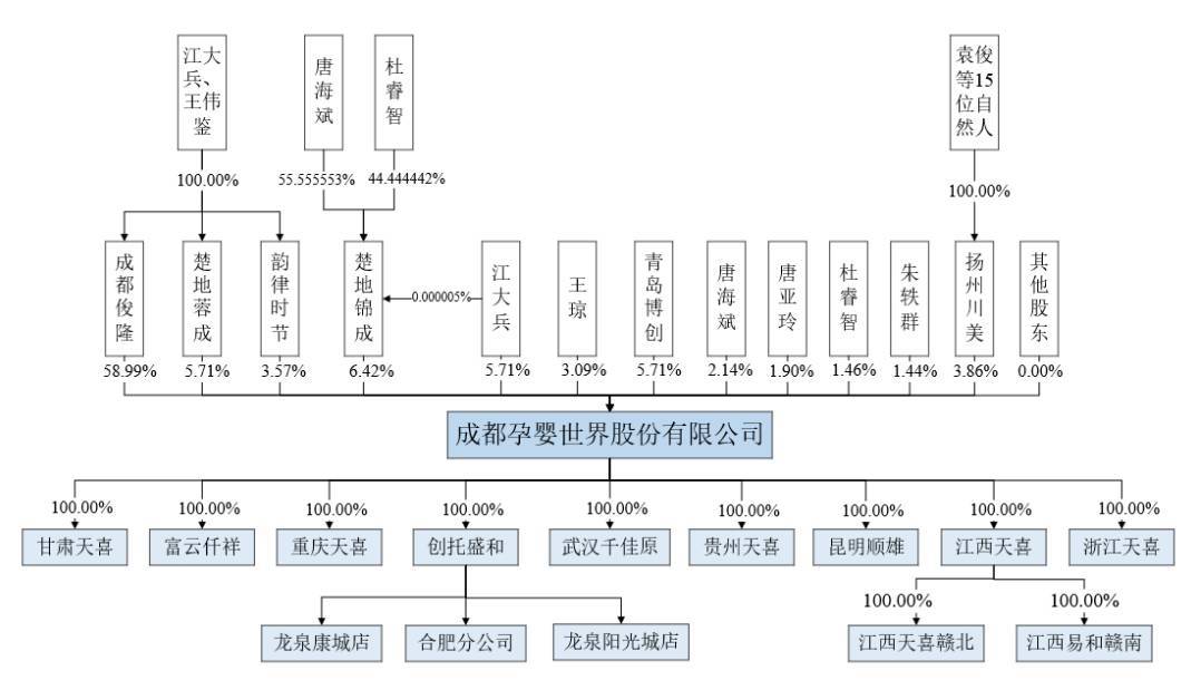 股权方面,江大兵、王伟鉴通过江大兵直接持有的公司股份、实际控制的成都俊隆、韵律时节、楚地蓉成、楚地锦成及其一致行动人王琼直接持有的公司股份,合计控制公司83.4929%的表决权。