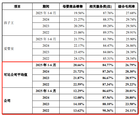 对此,孕婴世界解释称,报告期内,公司的综合毛利率低于同行业可比公司综合毛利率,主要来自于母婴商品销售业务的差异。公司的母婴商品销售业务毛利率低于同行业可比公司,主要受双方经营模式及所处产业链位置不同影响。