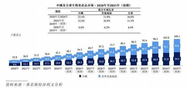 根据弗若斯特沙利文报告,2020年全球生物基产品市场规模为228亿美元,2024年增至421亿美元,2020年至2024年的复合年增长率为16.6%。预计该市场规模将于2030年达到801亿美元,并于2035年达到1,091亿美元,2024年至2030年以及2030年至2035年期间的复合年增长率分别为11.3%及6.4%。