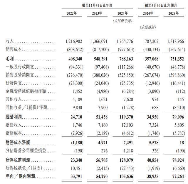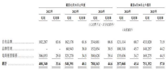 报告期各期,若羽臣自有品牌的毛利率分别为63.6%、61.6%、66.8%、71.9%,显著高于品牌管理业务和电商运营服务,为若羽臣整体利润提升做出了重要贡献。2022年-2024年,若羽臣的净利润分别为3379.1万元、5429.0万元、1.06亿元,年复合增长率达76.8%。2025年上半年,同比增长85.60%至7226.4万元,是2024年全年的68.41%。