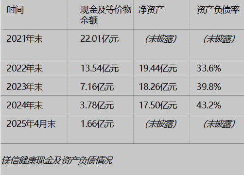招股书显示,2021年末公司持有现金及现金等价物22.01亿元,到2022年末降至13.54亿元,2023年末进一步降至7.16亿元,2024年末仅剩3.78亿元,而截至2025年4月30日账上现金更骤减至1.66亿元。