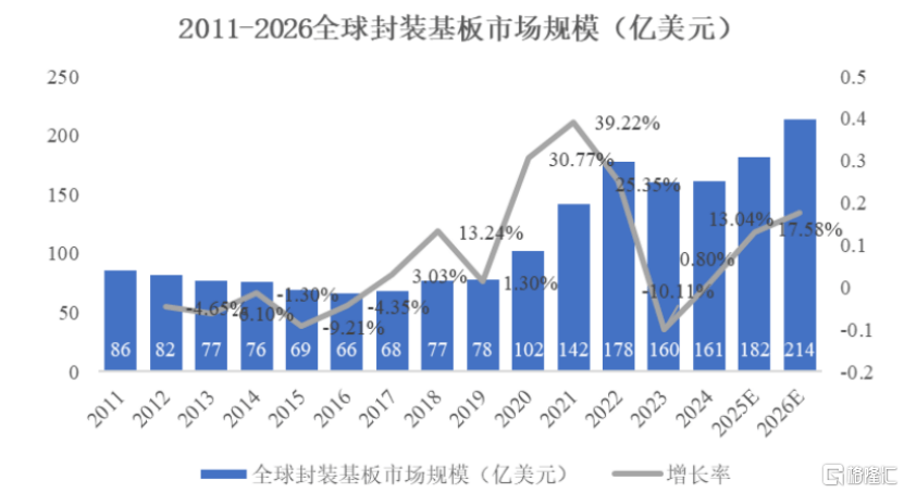 根据Prismark数据显示,全球封装载板市场规模已从2023年的周期性低谷160亿美元实现至2024年的逐渐复苏。