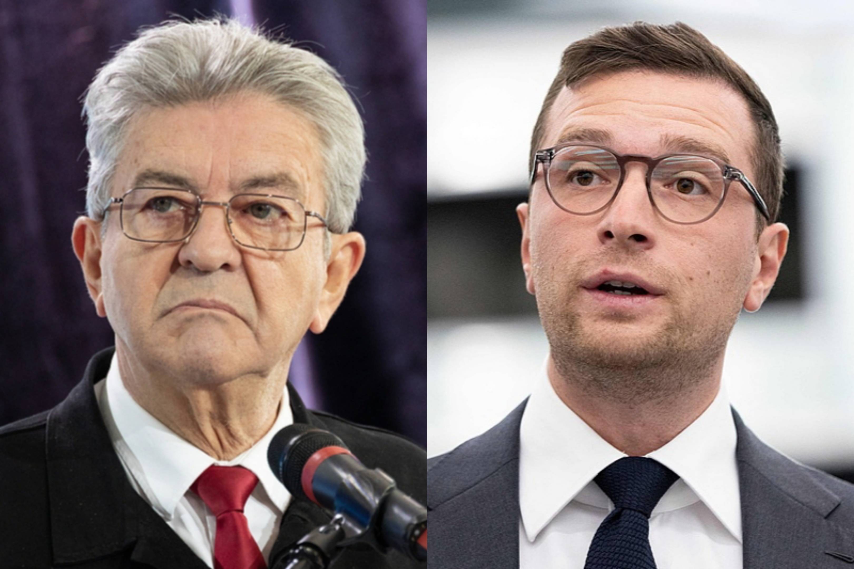 △极左翼“不屈法国”领导人梅朗雄(左)、极右翼国民联盟主席巴尔代拉(右)