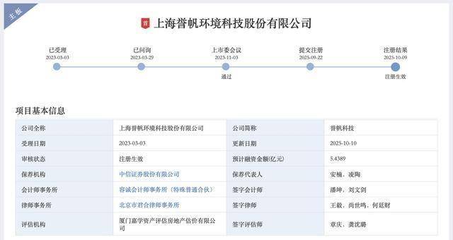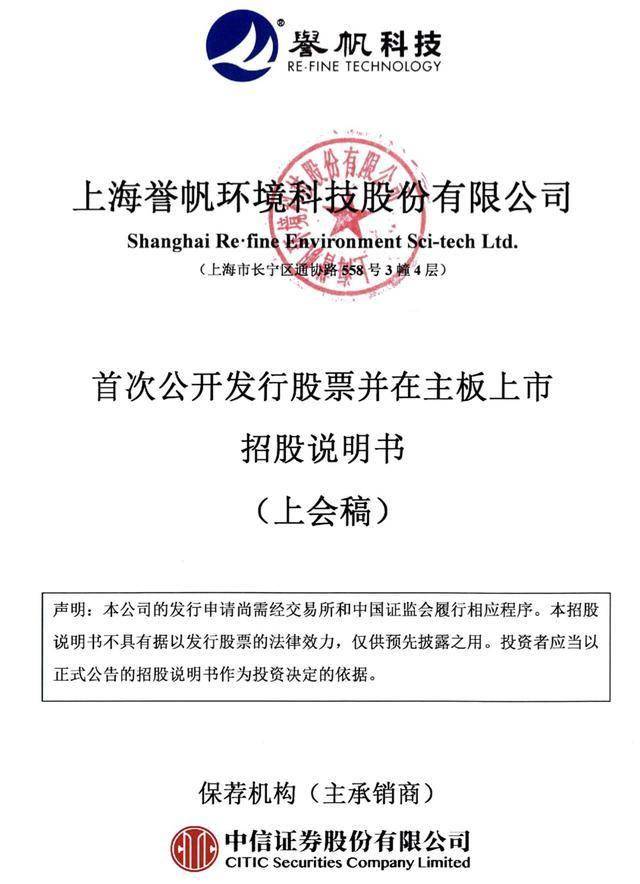瑞财经 吴文婷近日,上海誉帆环境科技股份有限公司(以下简称“誉帆科技”)深主板IPO注册生效,保荐机构为中信证券股份有限公司。