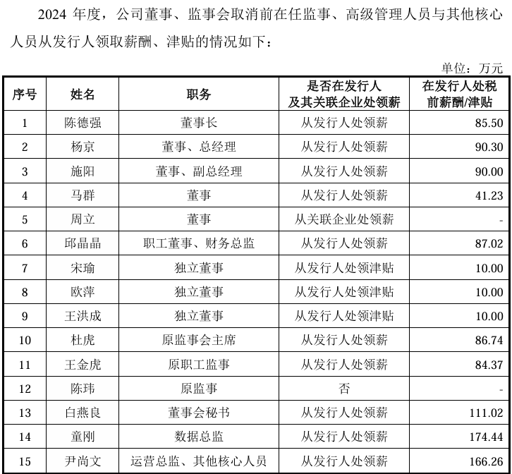 从核心高管上看,企查查的收入水平也显得并无竞争力。前三号人物董事长陈德强、总经理杨京和副总经理施阳2024年领取收入均不足百万,收入最高的数据总监童刚2024年收入为174.44万元。