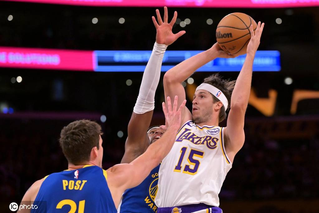 湖人队首发:奥斯汀-里夫斯、八村塁、道尔顿-克内克特、德安德烈-艾顿、贾里德-范德比尔特