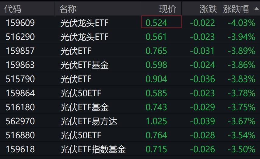 受盘面影响,光伏相关ETF跌超3%。