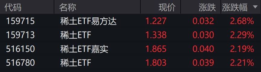 受盘面影响,跟踪中证稀土产业指数的ETF涨超2%。
