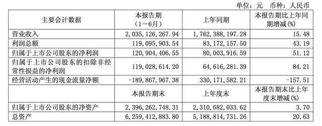 2025上半年,公司实现营收为20.35亿元,同比增长15.48%;归母净利润为1.21亿元,同比增长51.12%。