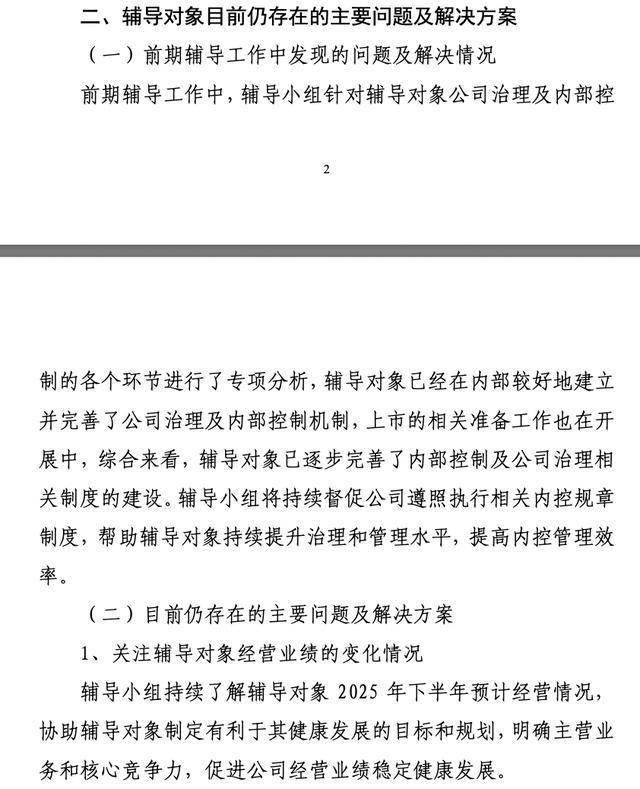 同时,辅导小组持续了解辅导对象2025年下半年预计经营情况,协助辅导对象制定有利于其健康发展的目标和规划,明确主营业务和核心竞争力,促进公司经营业绩稳定健康发展。