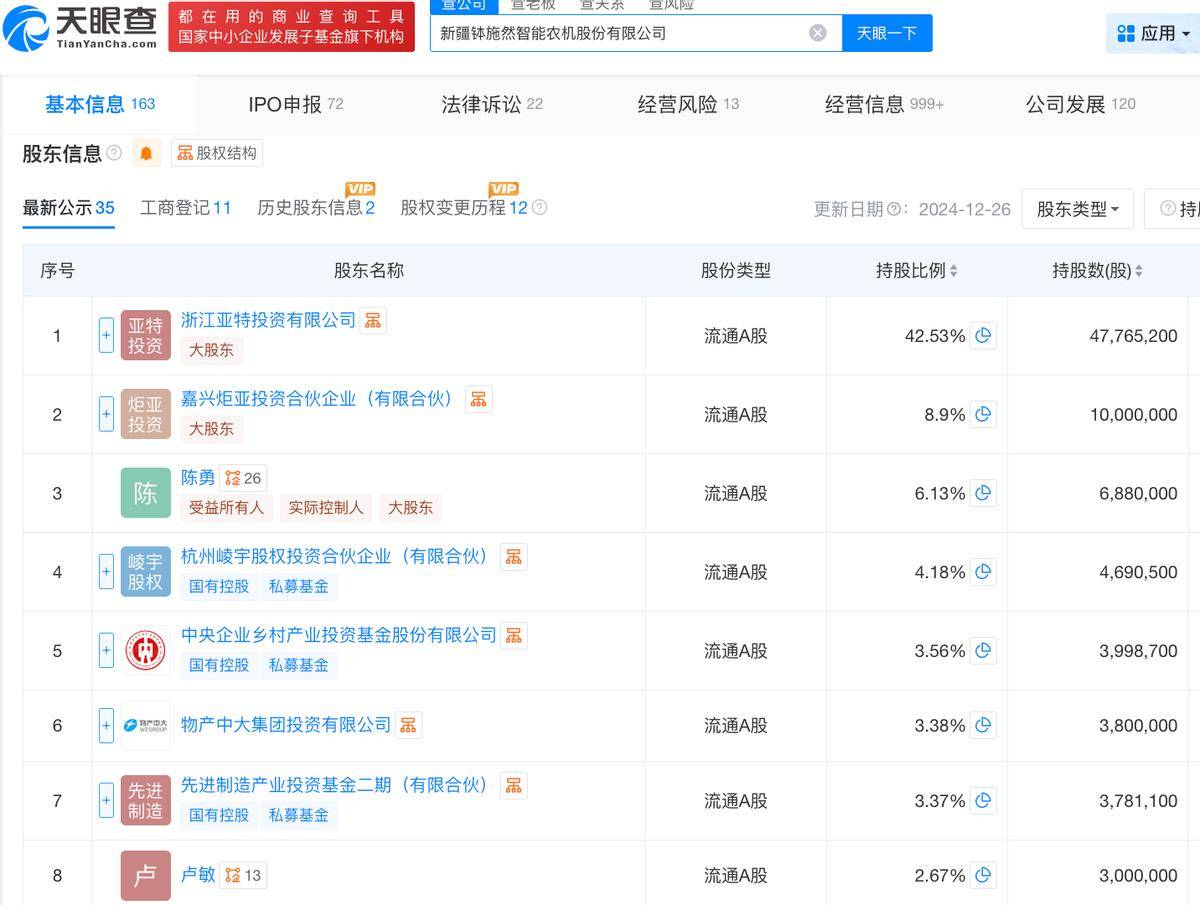天眼查App信息显示,钵施然成立于2009年8月,位于新疆塔城地区乌苏市。目前,该公司的注册资本约为1.12亿元,法定代表人为马治鹏,主要股东包括浙江亚特投资有限公司、嘉兴炬亚投资合伙企业(有限合伙)等。
