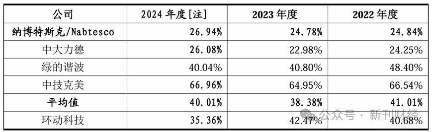 如上表所示,环动科技报告期95%收入来源的RV减速器平均售价、单位成本和毛利率明细。报告期平均售价逐年降低是毛利率下滑的最重要原因,2024年平均售价为2762.14元,同比下降9.89个百分点,基本和营业毛利下降的8.15个百分点保持同步。