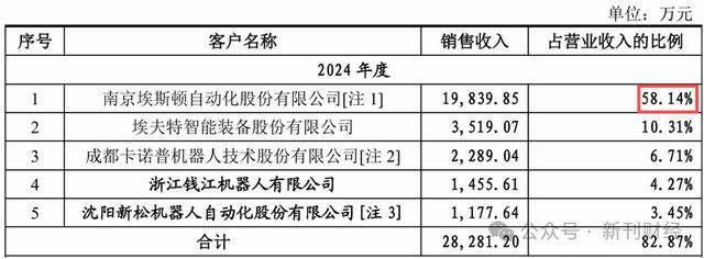据环动科技招股书显示,2024年前五大客户销售占比为82.87%,其中对埃斯顿的销售占比较大58.14%,这一数据表明,环动科技严重依赖第一大客户埃斯顿的销售贡献。