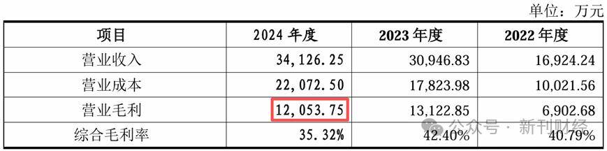 环动科技2022年至2024年综合毛利率分别为40.79%、42.40%和35.32%,2024年同比下降7.08个百分点,呈现快速下跌趋势,直接导致2024年在收入同比增长10.27%的情况下,营业毛利下降8.15个百分点,导致增收不增利。