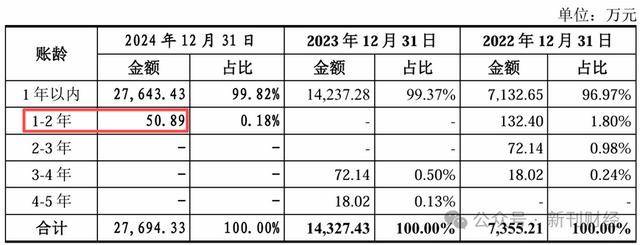 环动科技2024年年末应收第一大客户埃斯顿的金额为21,127.75万元,占应收账款余额的比例为72.68%。2024年年末,应收埃斯顿21,127.75万元,对应收入金额为17,812.17万元(21,127.75万元除以1.13,即扣掉销售增值税),再结合如下账龄分析表,1-2年账龄金额仅为50.89万元(可以忽略不计),可以推测出公司2024年对埃斯顿销售收入19,839.85万元中仅有2,027.68万元收入收到货款,即收到货款收入仅占当期收入的比率为10.22%,其余89.78%的收入没有收到货款,换句话来说,是赊账实现的收入。
