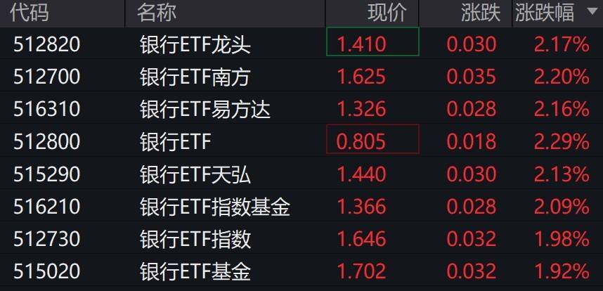 受盘面影响,多只银行相关ETF涨超2%。
