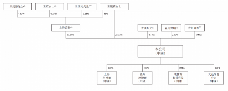 招股书显示,王丽莉直接持有该公司25.33%的股权,通过上海蓝银控制67.14%的投票权,通过员工激励平台青州坦文控制坦博尔4.17%的投票权。上海蓝银由王丽莉、王润基、王红、王开元分别控制55.0%、44.5%、0.27%和0.23%的权益。其中,王丽莉为坦博尔董事长、执行董事兼总经理,王润基为王丽莉之子,王红为王润基的姑姑,王开元为王润基的爷爷。在2025年分红2.9亿元之前,2022年该公司也曾宣派并支付股息3500万元。
