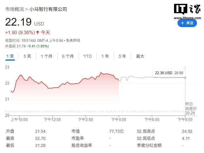 值得一提的是,小马智行美股昨日收涨 9.36%,目前市值达 77.73 亿美元(现汇率约合 554.6 亿元人民币)。