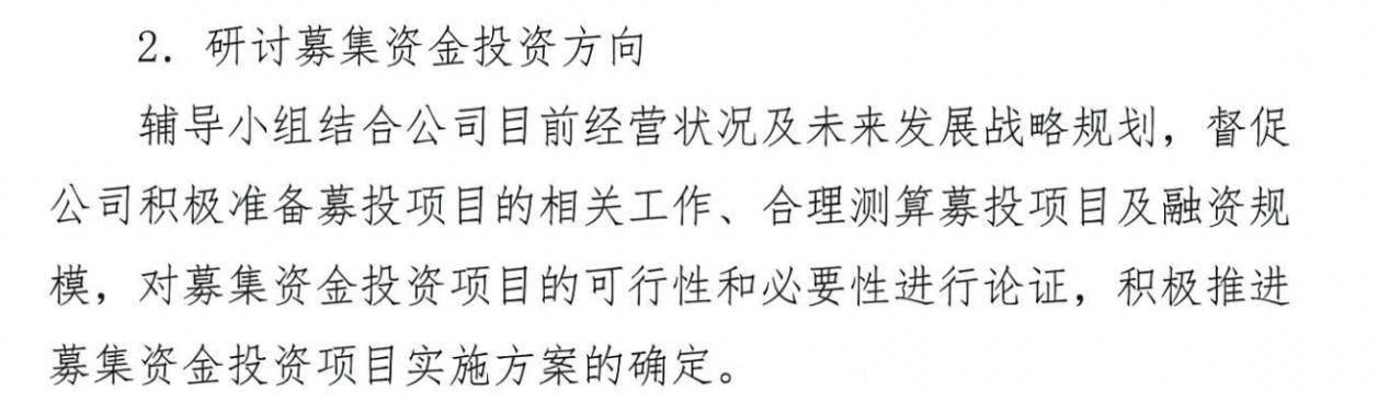 根据辅导报告,辅导小组结合公司目前经营状况及未来发展战略规划,督促公司积极准备募投项目的相关工作、合理测算募投项目及融资规模,对募集资金投资项目的可行性和必要性进行论证,积极推进募集资金投资项目实施方案的确定。