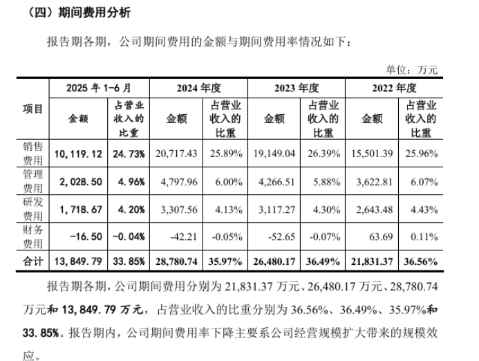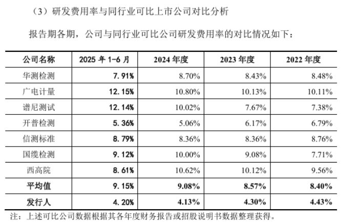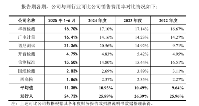 而且,天溯计量作为头顶“国家级服务业标准化试点项目”,“服务型制造示范平台”,2024年“广东省制造业单项冠军企业”,“第二批深圳市制造业单项冠军企业”等诸多头衔的企业,该公司在研发费用上的投入远低于同行,明显有“重销售轻研发”的倾向。以2024年为例,销售费用占营收比例高达25.89%,而研发费用的占比仅为4.13%。