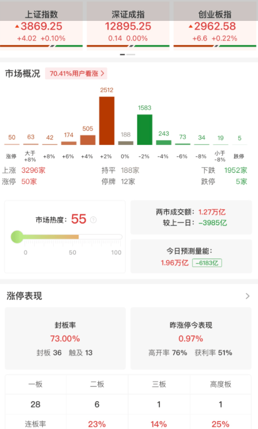 格隆汇10月15日|截至午间收盘,沪指涨0.1%,深成指涨0.00%,创业板指涨0.22%。沪深两市半日成交额1.27万亿,较上个交易日缩量3985亿。盘面上热点较为杂乱,整体高低切换,主要集中在医药、国产软件、消费等方向.军工板块集体走弱,北方长龙跌超10%。半导体板块出现明显分歧,至纯科技跌停。