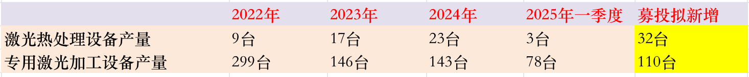从实际产量来看,莱普科技“激光热处理设备”2022年至2025年一季度产量分别为9台、17台、29台、3台;“专用激光加工设备”的数据则分别为299台、146台、143台、78台,呈现逐年下降的趋势,产量的峰值出现在2022年。