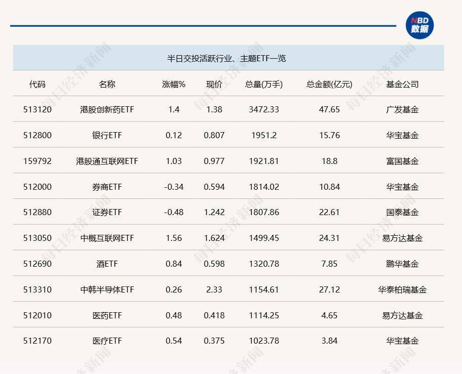 10月15日上午,大医药行业交投活跃,港股创新药ETF(513120)半日成交总量达到3472万手,成交金额为47.65亿元,成交显著放量,另外,医药ETF(512010)和医疗ETF(512170)半日成交总量也超过千万手。
