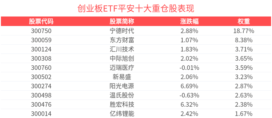 创业板ETF平安紧密跟踪创业板指数,创业板指由创业板中市值大、流动性好的100只股票组成,反映创业板市场的运行情况。
