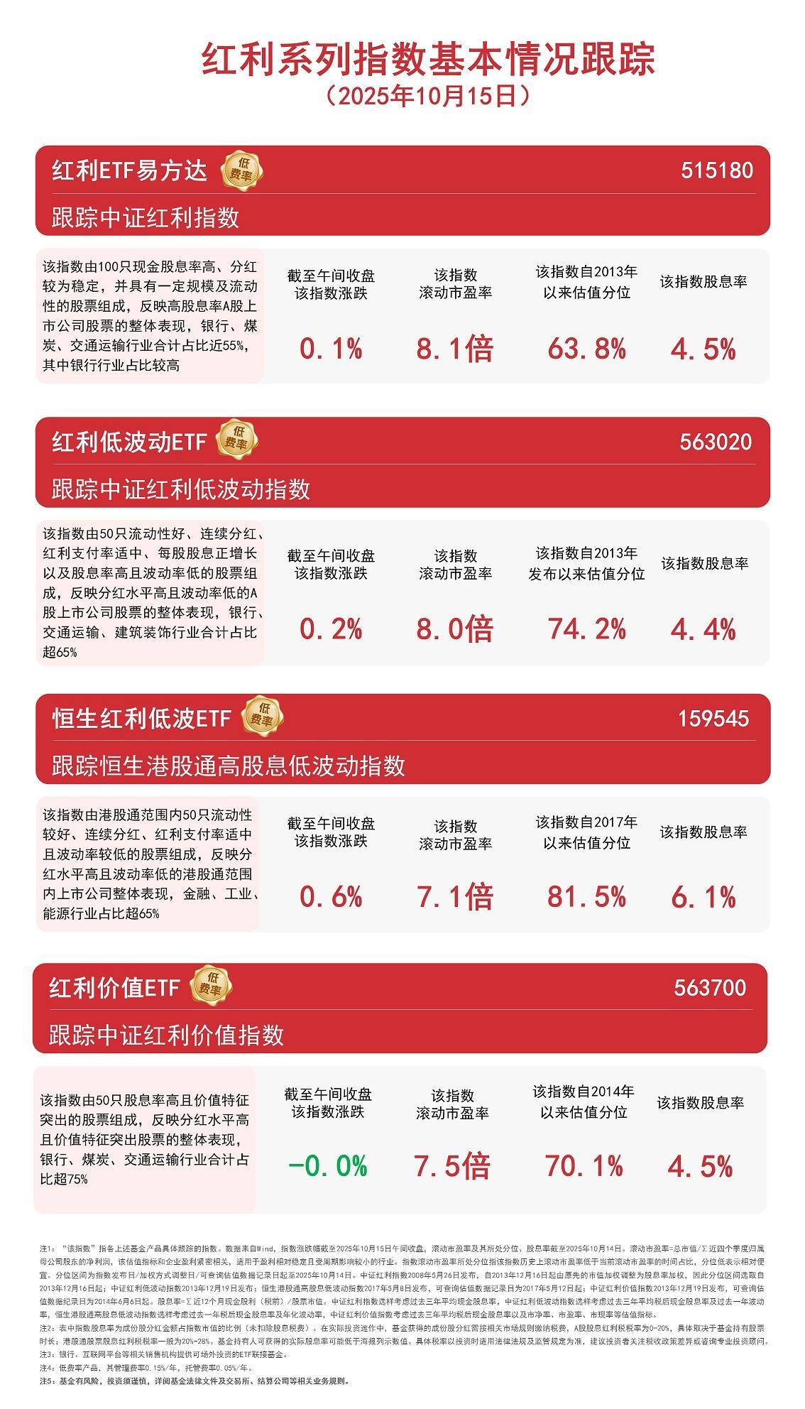 截至午间收盘,恒生港股通高股息低波动指数上涨0.6%,中证红利低波动指数上涨0.2%,中证红利指数上涨0.1%,中证红利价值指数下跌0.04%。