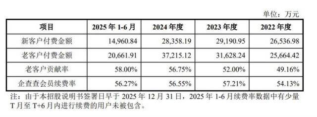 就付费用户忠诚度的角度来看,企查查老会员的续费率亦不算高。2022年、2023年、2024年度和2025年上半年,企查查会员的续费率分别约为54.13%、57.12%、56.55%和56.27%,于2024年开始出现下降,并在2025年上半年维持了这一趋势。