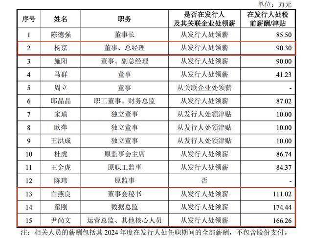2024年,杨京从企查查获得的税前薪酬为90.3万元。而董事会秘书白燕良薪酬为111.02万元,数据总监童刚薪酬为174.44万元,运营总监尹尚文薪酬为166.26万元。