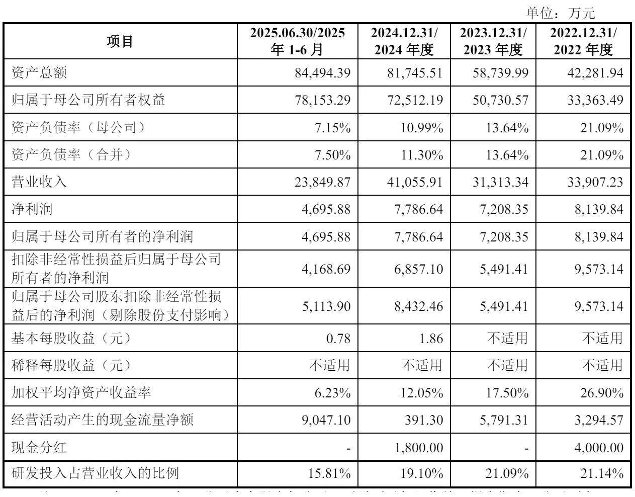 优迅股份2025年上半年营收为2.4亿元,净利为4696万元,扣非后净利为4169万元。