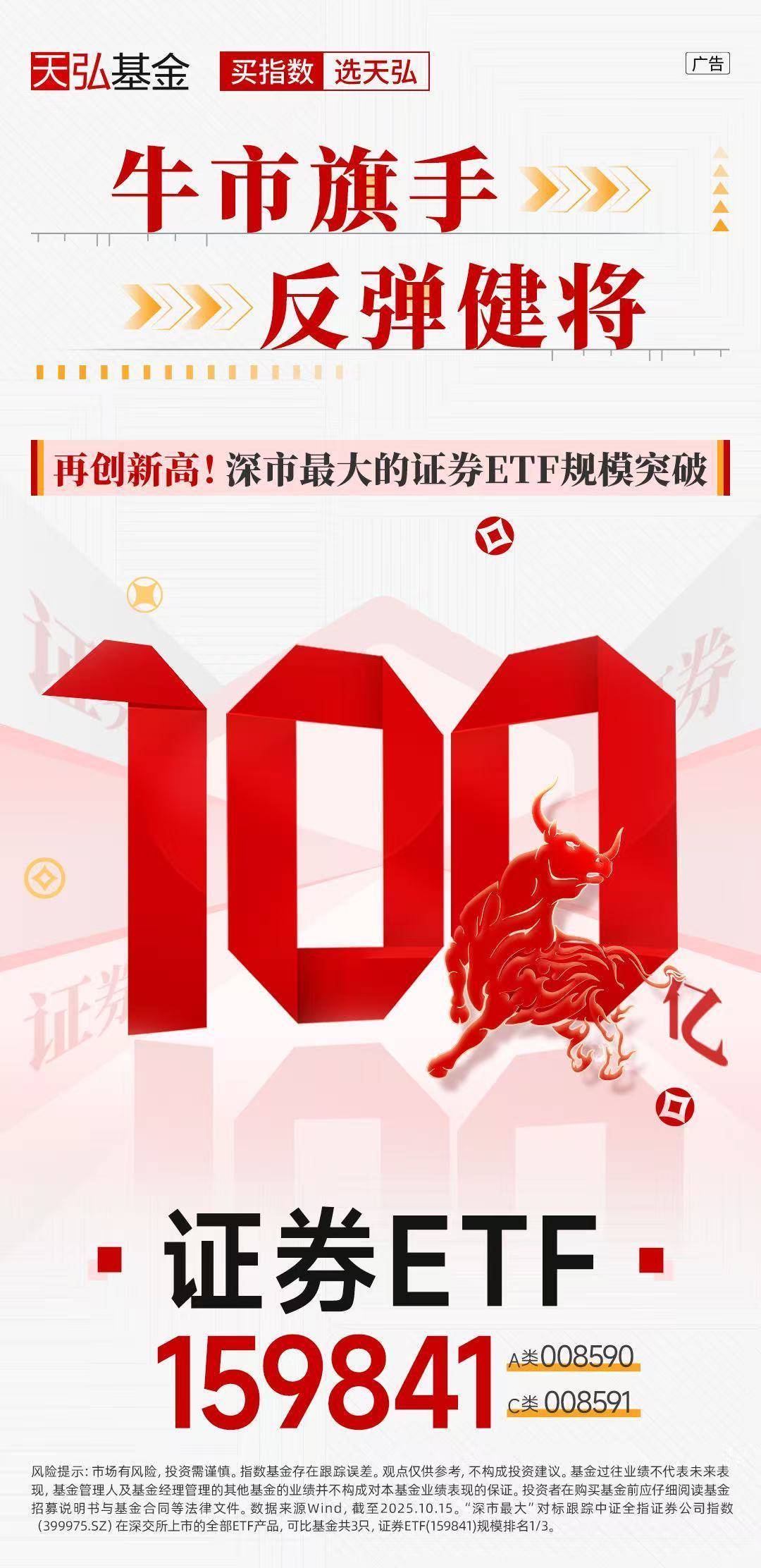 资金持续流入下,Wind数据显示,截至10月15日,证券ETF(159841)规模突破百亿元,成为深市首只规模突破百亿元的证券类ETF。截至三季度末,该产品今年以来日均成交额超3亿元,在全市场ETF日均成交额中排名前15%。