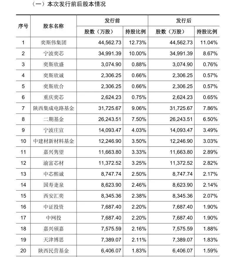 需要特地说明的是,西安奕材IPO前,已经有大量国资入股,比如,陕西集成电路基金持股9.06%,国家集成电路产业投资基金二期持股7.50%,重庆渝富芯材私募股权投资基金合伙企业持股3.25%。