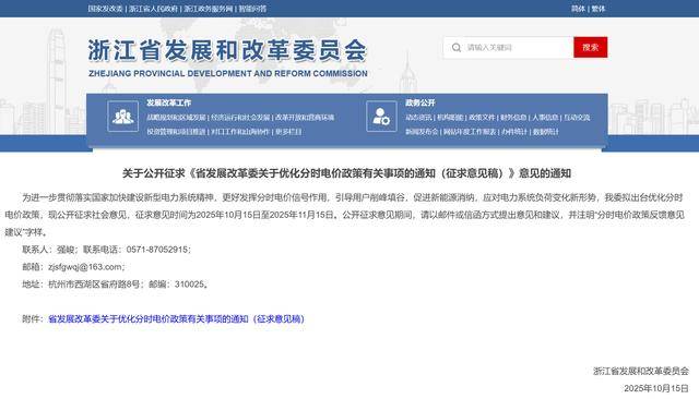 10月15日,浙江省发改委发布关于公开征求《省发展改革委关于优化分时电价政策有关事项的通知(征求意见稿)》意见的通知。