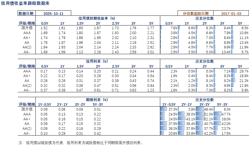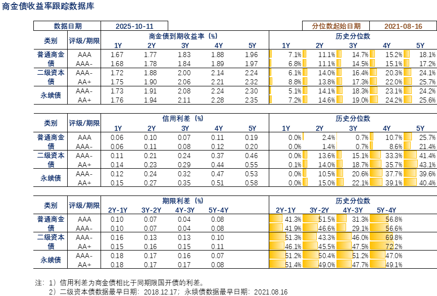 节后债市情绪转暖,普通信用利差3Y以内短端压降而3Y以上长端继续走阔,新规引发的负债端压力依然值得警惕,一些中长久期的信用品种、低等级弱流动性的信用资产仍面临估值调整压力,仍建议中短端套息为主。普通商金债3Y以内利差也有压缩,2-3Y左右商金,目前与存单利差尚可,可以适当配置。二永利差修复进度已接近9月调整幅度幅度的一半,考虑到资金面和基本面对债市均偏利多,对二永债中性偏积极,持有为主。